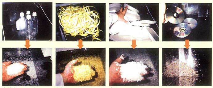 上記はペットボトル・PPバンド食品トレー・CDの粉砕例です